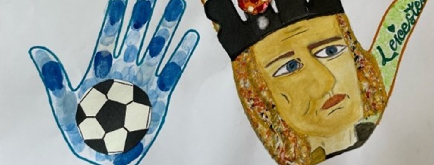 “Living in Leicester for under 2 years, our family’s biggest adventure was learning about the city’s history and present to fit into our new life here. This artwork captures King Richard and the city’s rich football legacy. We used colour paper, glue, paints and coloured pens.”